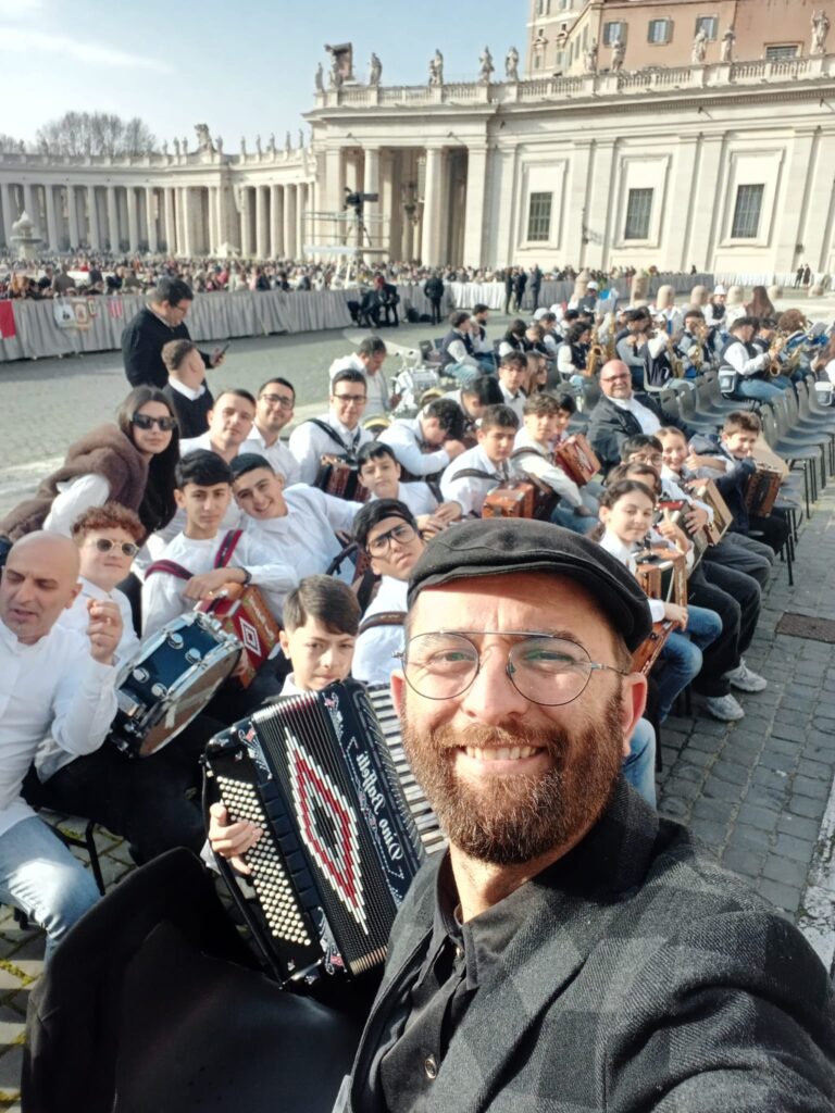 L’ensemble, composto da circa quaranta musicisti tra organetti, percussioni e strumenti a fiato, ha animato la piazza con un’esibizione sentita e coinvolgente. Un momento particolarmente significativo è stato quando il Santo Padre, nonostante il tempo previsto per l’esibizione fosse ormai terminato, ha incoraggiato i musicisti a continuare a suonare, dimostrando grande attenzione e apprezzamento per la loro musica.