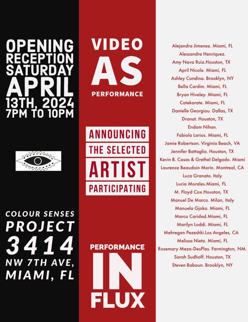 “Video as Performance” esplora la convergenza tra video arte e performance, evidenziando il corpo comeil mezzo espressivo primario. In uno scenario di trasformazione continua e tecnologicaprogresso, questa mostra esplora la fluidità dell’identità e della narrativa in un contesto multimediale.”Siamo entusiasti di presentare artisti provenienti da Florida, New York, Texas, California, Virginia, New Mexico, Italiaparte della nostra esplorazione della performance art contemporanea”, ha affermato Tere Garcia, fondatrice di Performance inFlux. “Questa mostra promette di provocare riflessioni e conversazioni sulle potenzialità espressive divideo nell’ambito della performance.”