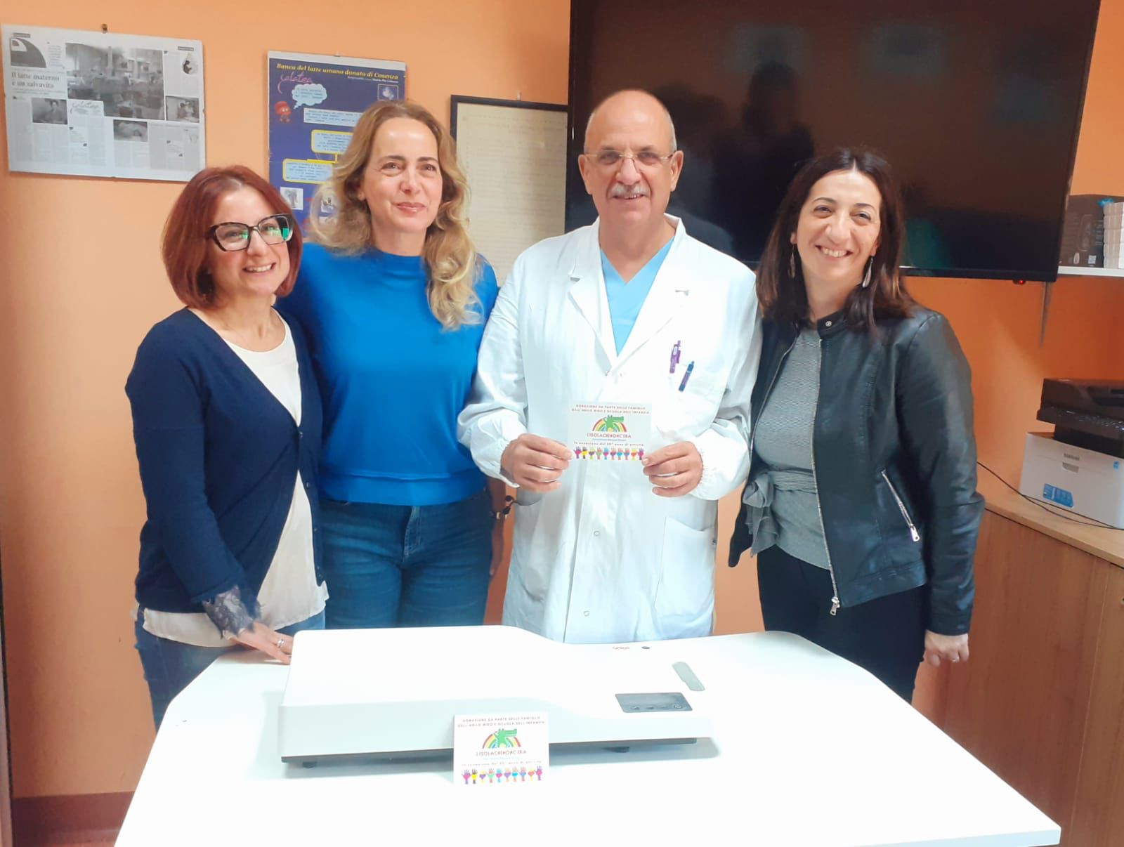 Erano presenti il Direttore della TIN di Cosenza dr. Gianfranco Scarpelli, il dr. Antonio Contaldo, la direttrice de L’Isolachenonc’era, prof.ssa Iolanda Cerrone, il personale e i Rappresentanti d’Istituto le sig.re Cristina Talesa e Annarita Arnieri , le caposala Alessandra Rija e Giulia Simone. La cerimonia che ha accompagnato la consegna è stata per i bambini de L’Isolachenonc’era un’altra occasione di gioia e di festa. Soprattutto un modo per fare scuola oltre la scuola, un’iniziativa come le tante che in questi anni l’Isola ha concretizzato portando avanti piccoli progetti d’aiuto.