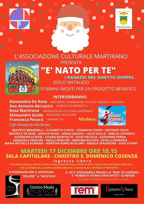 “L’Associazione Martirano presenta “E’ nato per te”, 10 brani inediti per un progetto benefico.