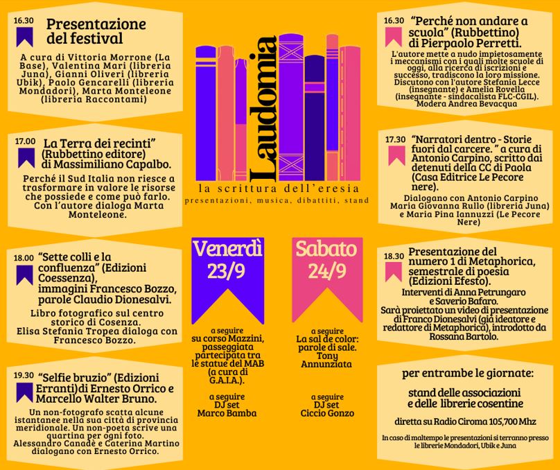 Abbiamo deciso di metterci insieme per dare vita a due giornate di presentazioni e pubblici confronti all’aperto, nel cuore di Cosenza, in Via Macallè e Via Don Minzoni.