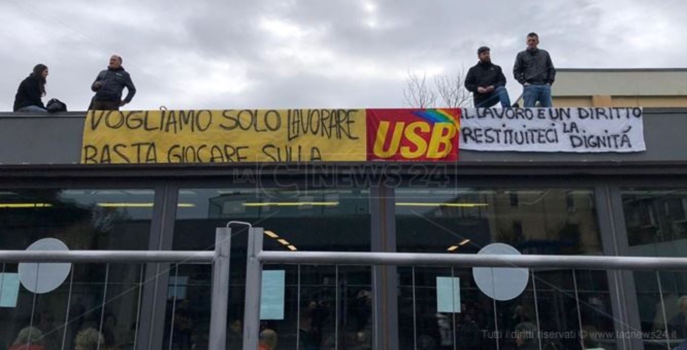 “Esposta sul tetto degli uffici ubicati nel complesso dell’ospedale Annunziata di Cosenza, la protesta dei dipendenti della Seatt, la cooperativa affidataria dei servizi di prenotazione e pagamento visite. L’ultima proroga del contratto di appalto scadrà il 30 novembre”