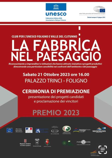 La Fabbrica nel Paesaggio è il più importante concorso internazionale di progettazione urbanistica e riqualificazione paesaggistica promosso dalla Federazione Italiana dei Club per l’Unesco. Nato nel 2010 su iniziativa del Club di Foligno, in 14 anni ha selezionato e premiato gli interventi, le riqualificazioni, i recuperi più coerenti con gli indirizzi di sostenibilità e tutela dettati dall’organismo mondiale.