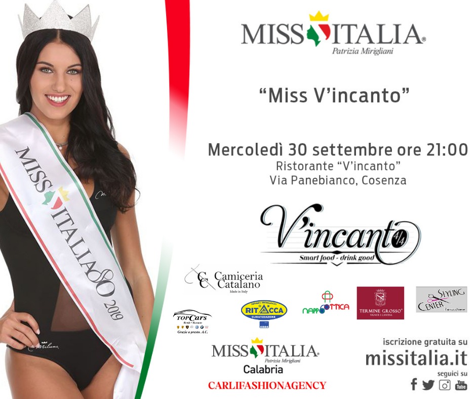 Dopo l’elezione di “Miss Città di Diamante”, le prossime selezioni si terranno domenica 27 Settembre, presso le gradinate di Via Calabria, nel cuore della città di Cosenza; e mercoledì 30 Settembre 2020 nello splendido “V’Incanto”, sempre a Cosenza, alle 21.