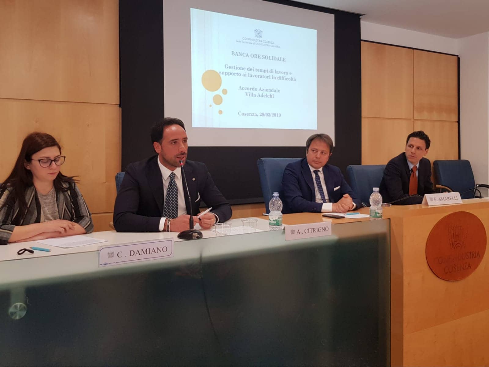 “La condivisione solidale, da parte dei lavoratori, dei propri riposi e delle ferie in favore di altri colleghi in difficoltà è alla base dell’accordo aziendale sottoscritto in Confindustria Cosenza dalla struttura Villa Adelchi del Gruppo Citrigno e dai dipendenti della residenza sanitaria.
