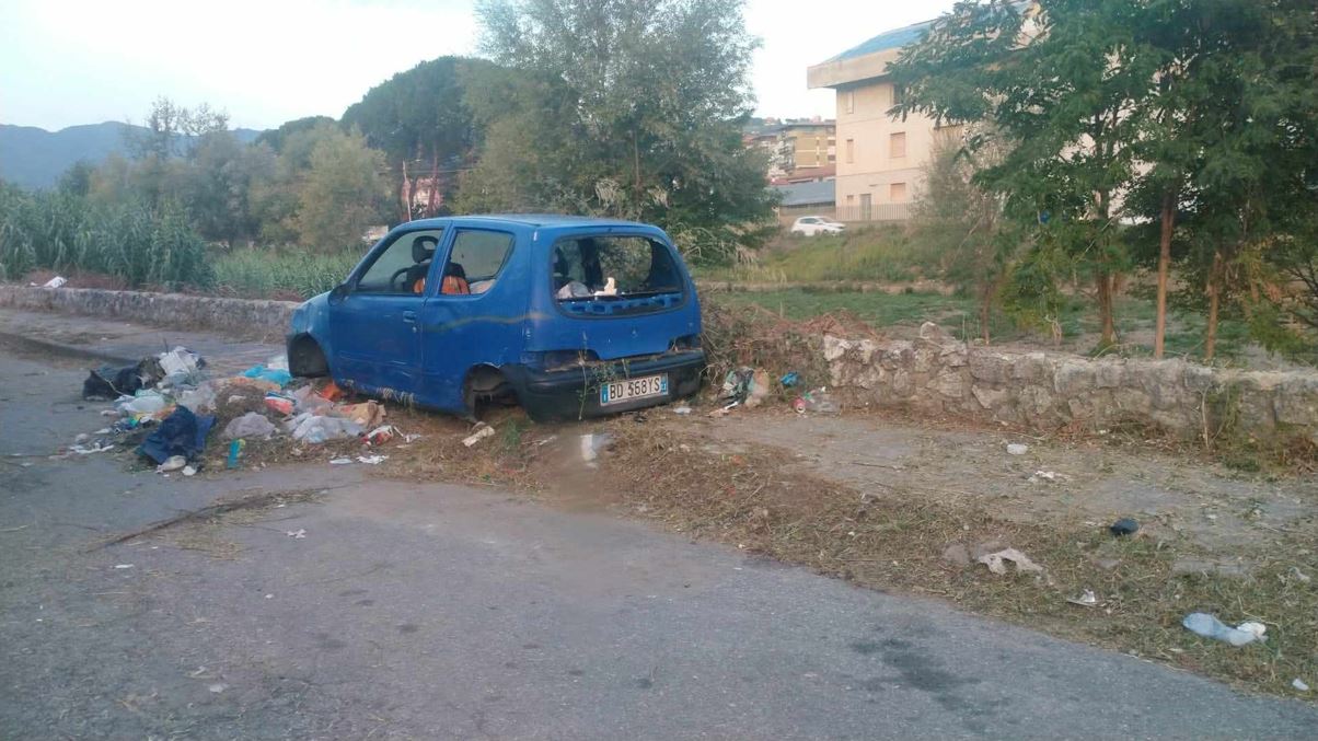 In particolare, ci tenevo a rendere pubblico l’abbandono di una seicento blu, diventata ormai un ricettacolo di spazzatura, indumenti, scarpe, topi morti e tanto tanto altro ancora.