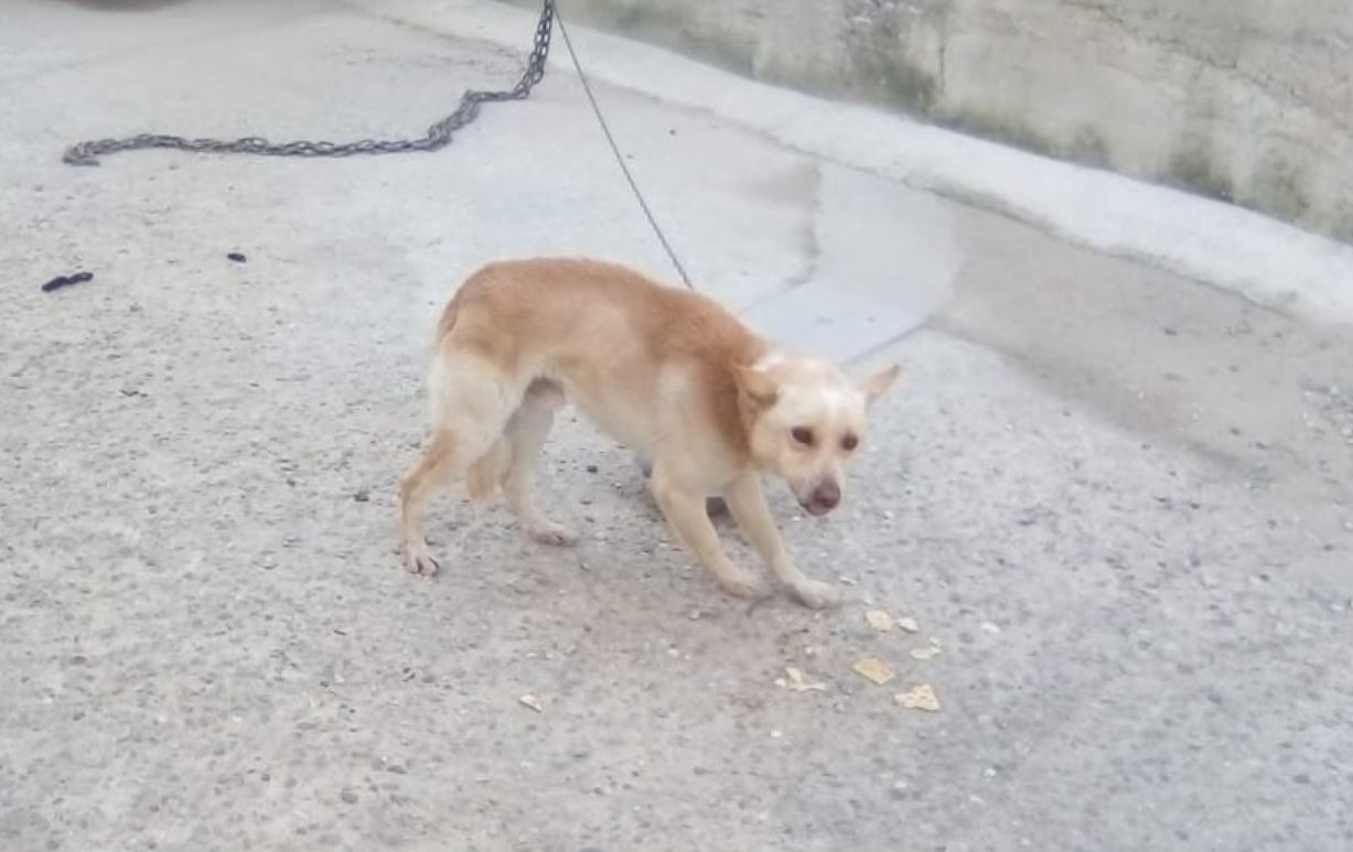 Quando si prova a sfamarlo i padroni tolgono le ciotole così da non poterlo aiutare. Si è provato ad avvertire autorità e associazioni ma nessuno fa nulla, forse perché in proprietà privata, ma la legge dovrebbe tutelare un maltrattamento di questo genere.