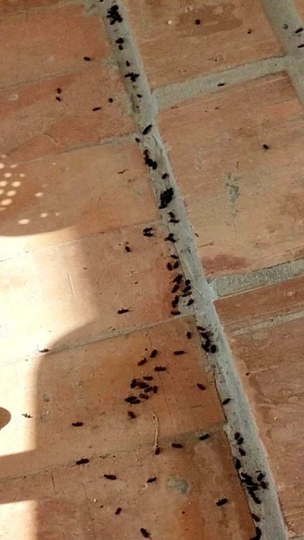 Indescrivibile la situazione con tappeti e tappeti di blatte che circolano e entrano nelle case, nei letti, nelle credenze. Tutti gli abitanti della zona si stanno difendendo come possono, decine di bombolette spruzzate, pacchi di soluzioni in polvere per arginare l’invasione, ma le blatte sono ovunque, vive e morte.