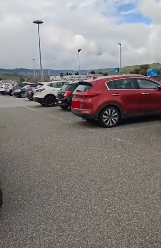Una fila intera di stalli per la ricarica, tutta occupata… e tra queste una sola macchina elettrica che ricarica. (Aggiungo che sono occupati anche i posteggi per disabili, ma questa è un’altra, triste, storia)