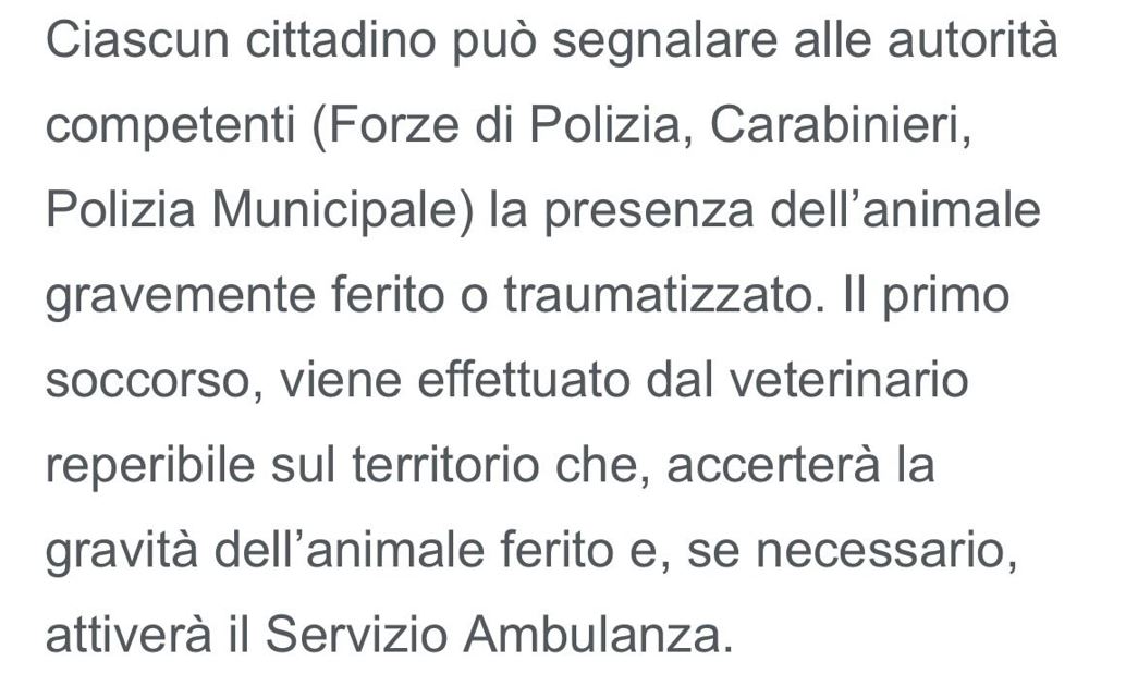 Sono scesa immediatamente dall’auto, insieme ad una coppia che ha assistito alla scena, e abbiamo trasportato l’animale agonizzante sul marciapiede, preferisco evitare di descrivere i dettagli delle sue condizioni, dico soltanto che erano molto gravi. Essendo sempre informata su queste notizie, ricordo subito che pochi mesi fa era stata attivato il Pronto soccorso veterinario ASP per animali randagi (vedi testo sotto).
