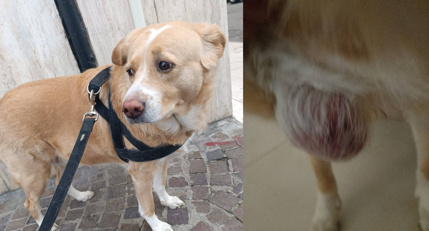 “Circa un anno e mezzo fa’ mi recavo dalla veterinaria perche il mio cane aveva un piccolo rigonfiamento sul petto, con una sorte di sacca esterna con sangue.