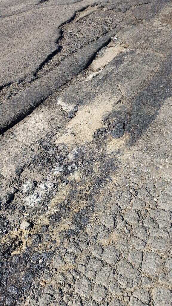 La carreggiata è disseminata di voragini enormi e profondissime, alcune delle quali superano anche i 30 centimetri di profondità. Ogni giorno la strada è intensamente trafficata da automobili e mezzi di trasporto, e per evitare le buche molti veicoli sono costretti a invadere la corsia opposta, con il concreto rischio di gravi incidenti.