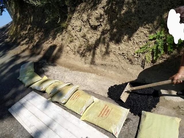 Noi abitanti di questa contrada, l’estate scorsa, abbiamo tagliato l’erba e acquistato dei sacchi di bitume per rattoppare un po’ ma non basta perché siamo riusciti a fare forse il 5% del lavoro.