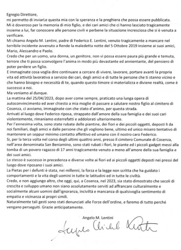 A questo dolore si aggiunge l’atto ripugnante del furto sulla lapide di FEDERICO. Si, avete ben capito. Esiste gente che va al cimitero e ruba piante, oggettini, sulla tomba di un ragazzino. Che ve ne fate dei fiori , seppur, belli, messi lì solo per lui? Portarvi a casa una pianta rubata in un contesto del genere è brutto, tanto.