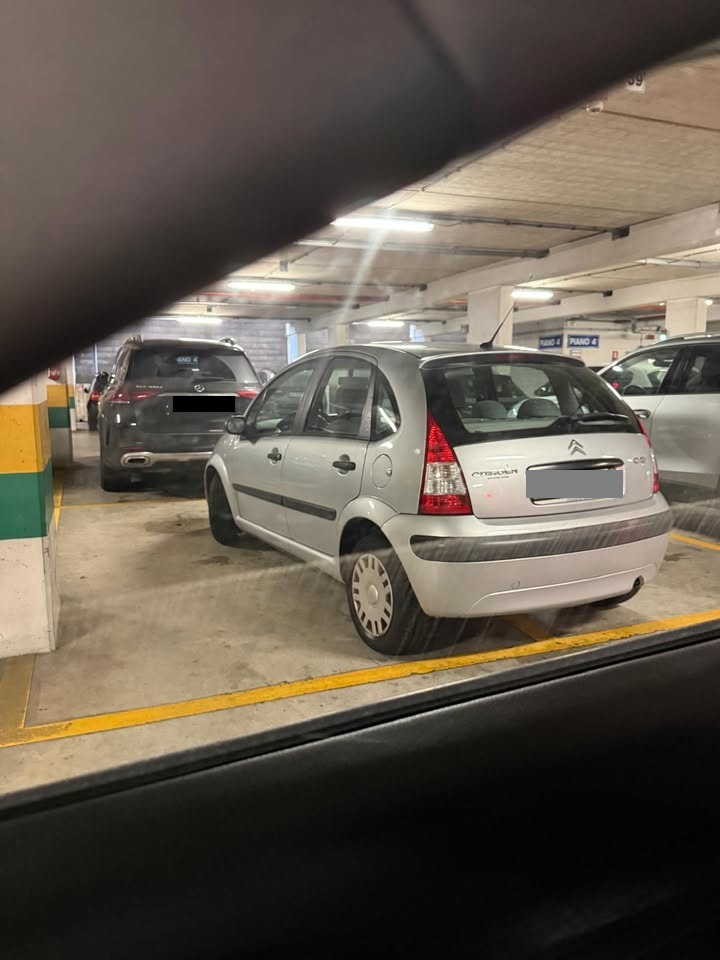 Queste che ho fotografato sono le sole macchine di una corsia di un piano, ma sono decine e decine le macchine che occupano due posti, non permettendo di parcheggiare.