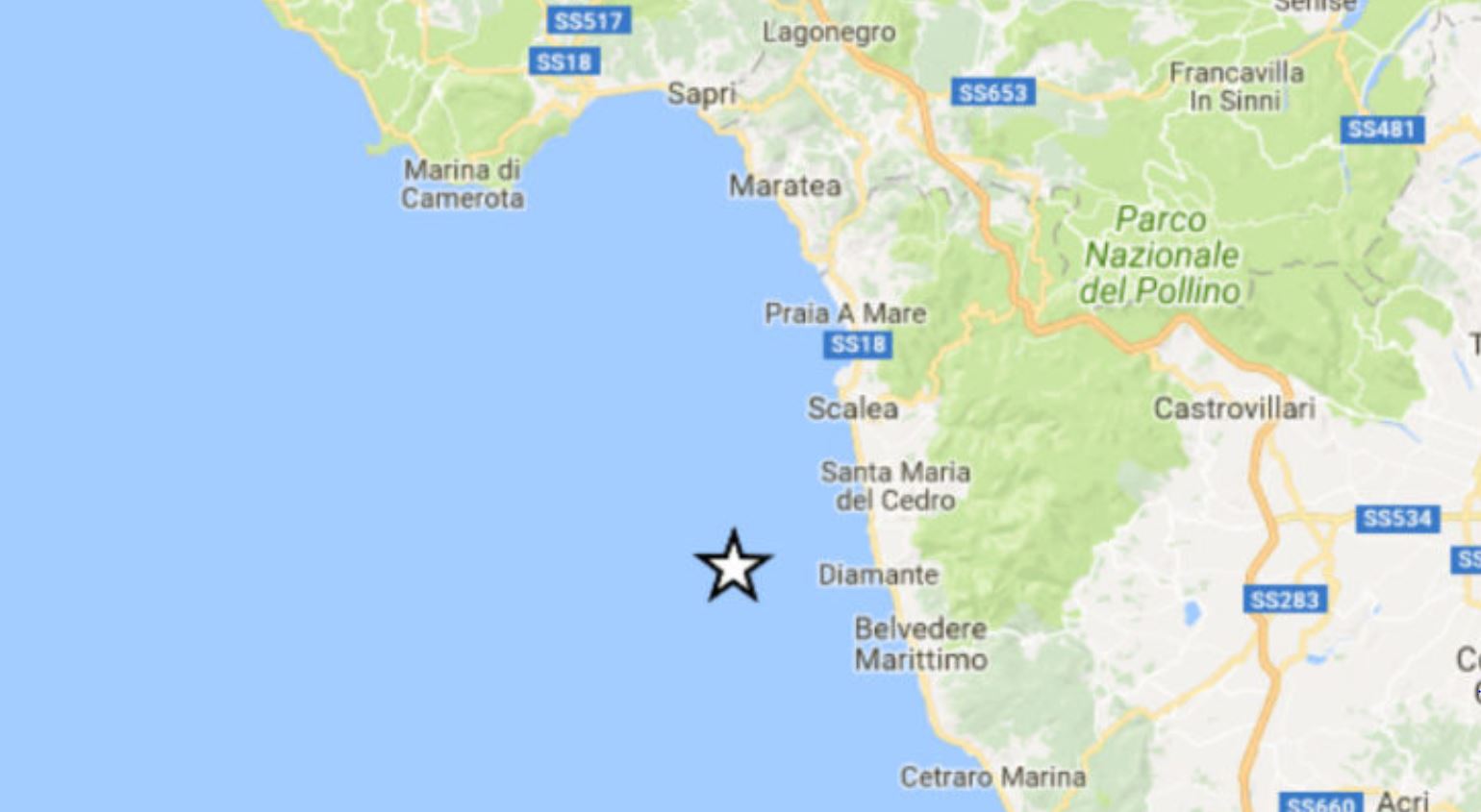 Una lieve scossa di terremoto di magnitudo 3.1 è stata registrata in mare, nelle acque antistanti Belvedere Marittimo
