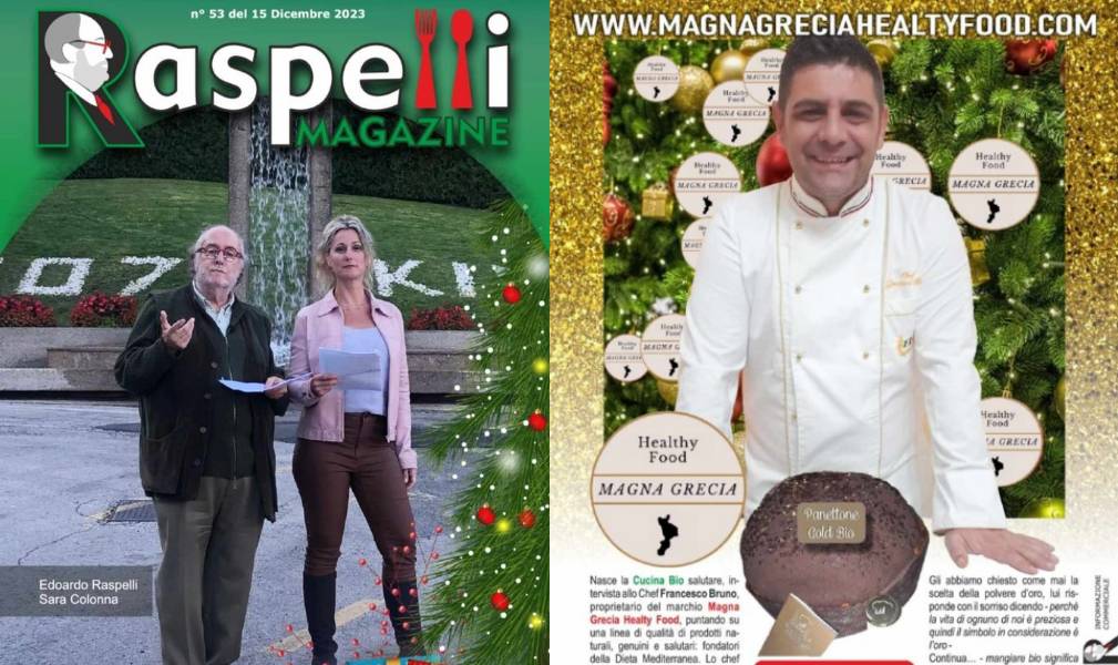Il nostro Chef Francesco Bruno, fresco fondatore del portale “Magna Grecia Healthy Food”, sta marcando sempre di più un’importante immagine professionale, attirando anche l’attenzione della prestigiosa rivista “Raspelli Magazine” del Dott. Eduardo Raspelli, ex volto del noto programma “Mela Verde”.