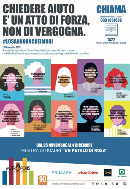 In occasione della Giornata Internazionale per l’eliminazione della violenza maschile contro le donne, il Centro Commerciale Metropolis, in collaborazione con la Fondazione Roberta Lanzino ODV, presenta la campagna di sensibilizzazione “LO SANNO ANCHE I MURI”