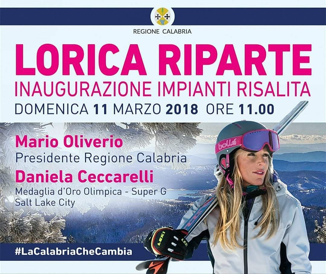 “E’ in programma per domani mattina alle 11.00, a Lorica, l’inaugurazione dei nuovi impianti di risalita. Ad annunciarlo è il presidente della Regione Oliverio che sarà presente all’inaugurazione alla quale è stata anche invitata Daniela Ceccarelli Medaglia d’oro olimpica nel Super G, di Salt Lake City. “