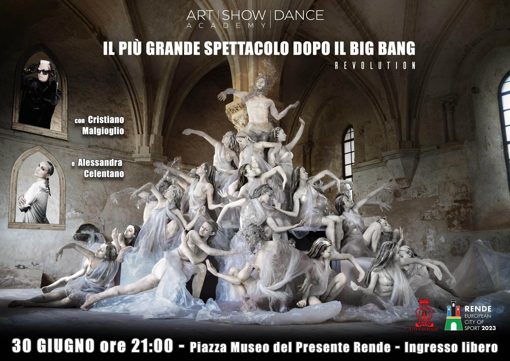 Rende CS) – Arte nella sua forma più pura e fuori da ogni schema, una vera e propria Rivoluzione, tutto questo è “il Più Grande Spettacolo dopo il Big Bang… Revolution…”, l’attesissimo spettacolo della Art Show Dance Academy scritto e diretto dal coreografo calabrese, Giuseppe Ferraro, che ne ha curato anche le coreografie insieme a Lucia Amodio e che si terrà venerdi 30 giugno 2023 alle ore 21.00 in piazza Museo Del Presente a Rende ( Cs).