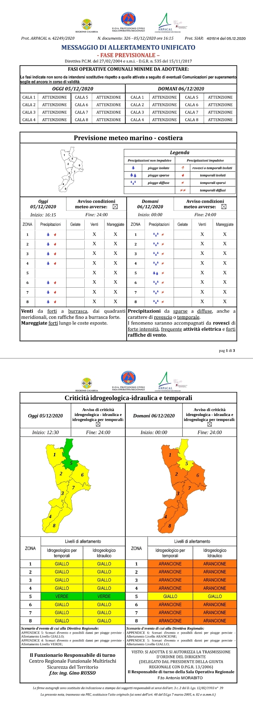 L’allertamento è stato diramato dalla Protezione Civile Calabria