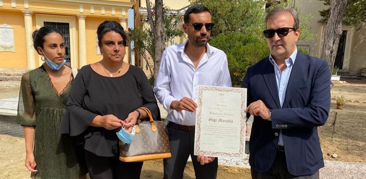 “Si è svolta stamattina la cerimonia di conferimento della cittadinanza onoraria di Cosenza post-mortem a Gigi Marulla al cimitero di Colle Mussano.