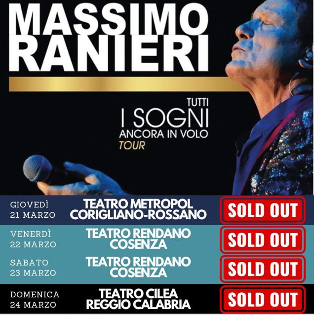I biglietti sono andati a ruba in poche settimane dopo l’annuncio dello show in Calabria. Lo spettacolo si veste di una nuova veste scenografica, l’organizzazione generale del tour è di Marco De Antoniis: sul palco con Massimo Ranieri ci sarà la band composta da Seby Burgio al pianoforte, Giovanna Perna alle voci e alle tastiere, Tony Puja e Andrea Pistilli alle chitarre, Valentina Pinto al violino e alle voci, Max Filosi e Cristiana Polegri al sax.