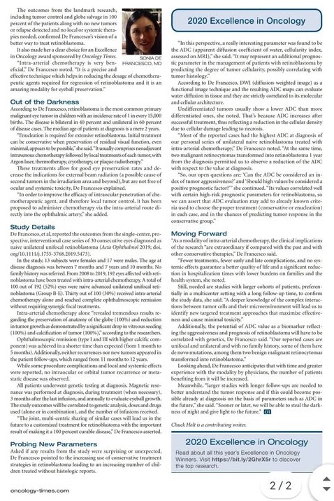 La rivista si occupa di notizie cliniche e di ricerca innovativa essenziali nel settore oncologico. Ogni anno promuove questo prestigioso riconoscimento internazionale “EXCELLENCE IN ONCOLOGY AWARD” nel campo dell’oncologia in generale.
