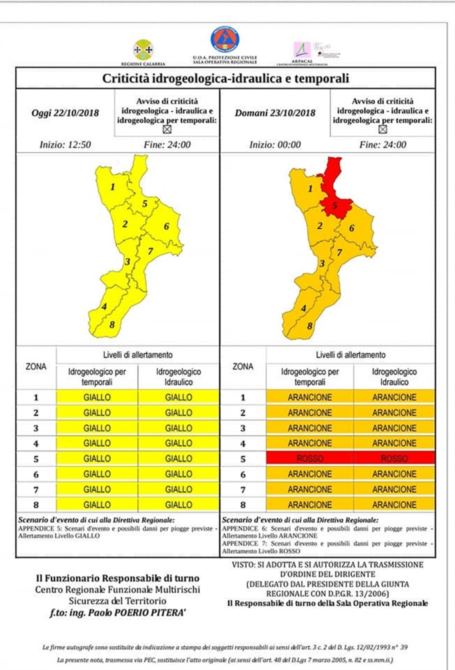 “Il dipartimento della Protezione civile ha diramato un bollettino di allerta arancione e rossa per la giornata di domani sulla Calabria. Piogge e temporali caratterizzeranno il meteo, con un venti forti e mareggiate lungo le coste.”