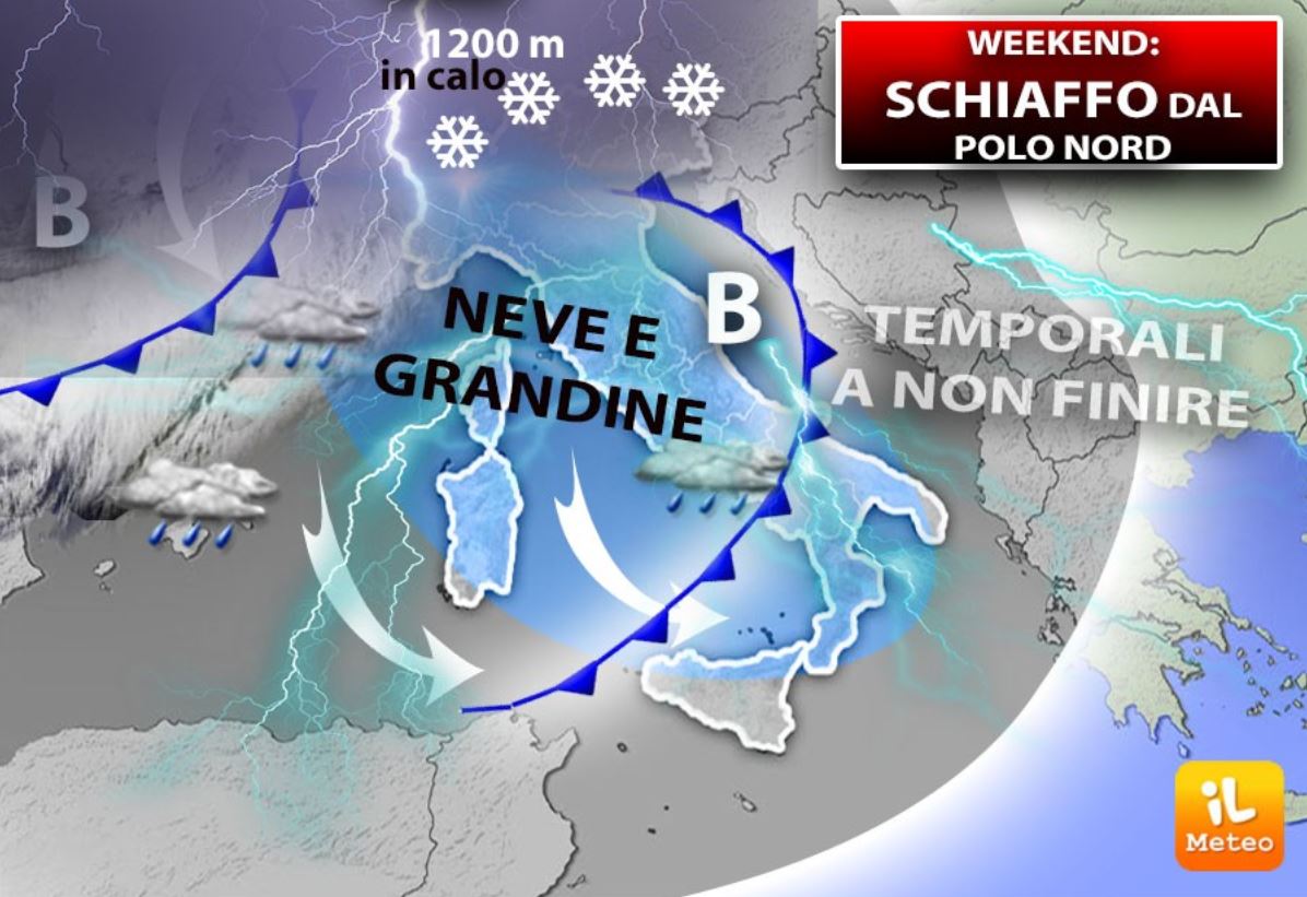 “Nel prossimo WEEKEND l’Italia si troverà nuovamente in rotta di collisione con una nuova ondata di maltempo, questa volta in arrivo direttamente dal POLO NORD.