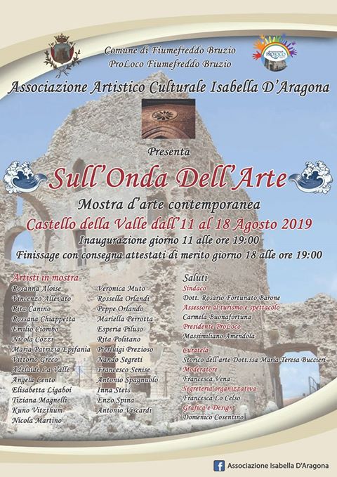 “L’ ASSOCIAZIONE ARTICO CULTURALE ISABELLA D’ Aragona presenta un importante evento che si svolgerà nel prestigioso Borgo di Fiumefreddo BRUZIO. Una mostra d‘ARTE CONTEMPORANEA alla quale parteciperanno nomi illustri non solo calabresi, pittori, scultori, fotografi.