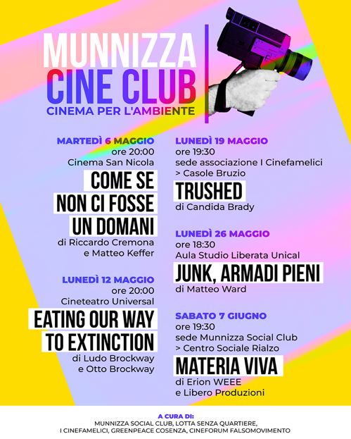 Martedì 6 maggio 2025, alle ore 20:00, presso il cinema San Nicola di Cosenza, avrà inizio la rassegna Munnizza CineClub – Cinema per l’ambiente, a cura di Munnizza Social Club, Greenpeace Cosenza, I Cinefamelici, Cineforum Falso movimento, Lotta senza quartiere, con la prima proiezione calabrese di “Come se non ci fosse un domani”