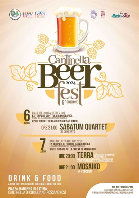 Sabato 6 e Domenica 7 luglio si svolgerà la quinta edizione del Cantinella Beer Fest, evento culturale, ricreativo, musicale e gastronomico