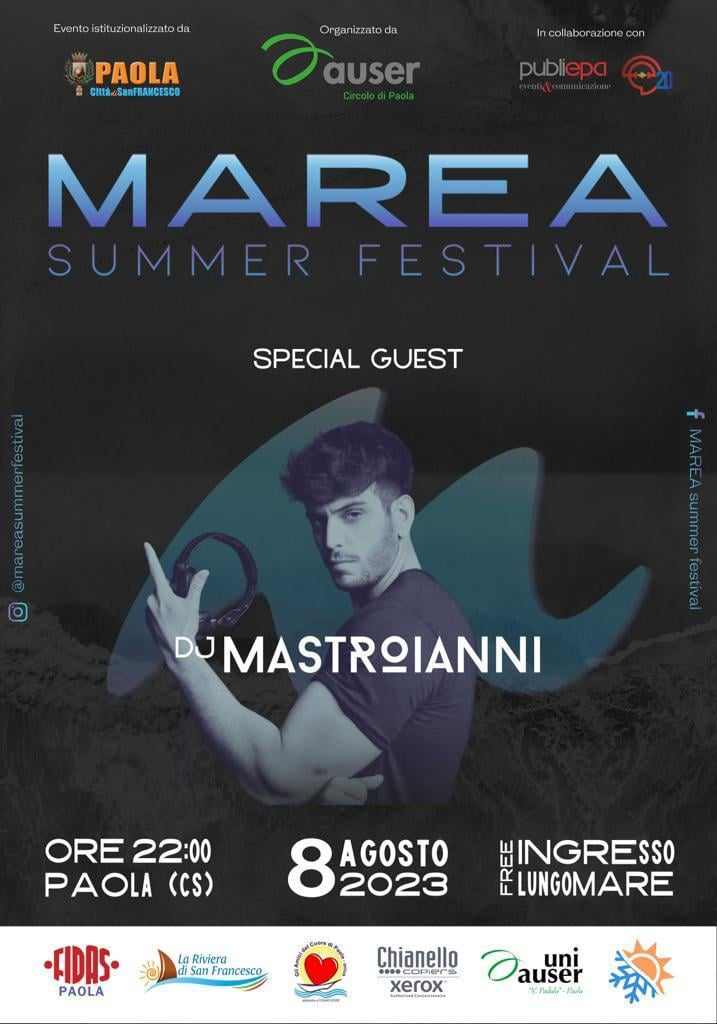 Tra i promotori dell’iniziativa vi è Andrea Signorelli, già giovane candidato a Sindaco e attuale consigliere comunale della Citta’ di Paola, da sempre vicino al mondo dell’associazionismo e dell’arte. Secondo Signorelli “Marea Summer Festival rappresenta un trampolino di lancio per promuovere la musica, la cultura e l’arte del territorio, puntando ad incentivare così il turismo e la promozione delle bellezze locali. È solo l’inizio, un’unione tra identità e innovazione. Auspichiamo sempre nuove collaborazioni e un maggior coinvolgimento della cittadinanza in quello che, negli anni a venire, potrebbe diventare uno degli eventi di punta della programmazione estiva del Tirreno cosentino”.