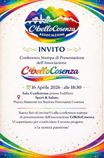 Sarà presentata ufficialmente giovedì 16 aprile 2026, alle ore 18:30, la nuova associazione CéBelloCosenza, nata con l’obiettivo di promuovere l’empowerment femminile e la parità di genere nel lavoro, nello sport, nella cultura, nella famiglia, nelle istituzioni e nella società tutta