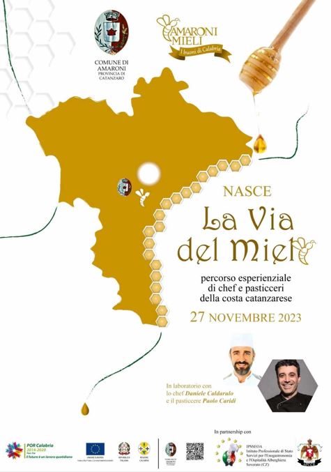 “Amaroni, Città del Miele della Calabria, traccia il solco di un nuovo progetto promozionale per la costa jonica catanzarese: la prima Via del Miele della regione, che conduce chef e pasticceri di locali selezionati verso una gastronomia ricercata e genuina.