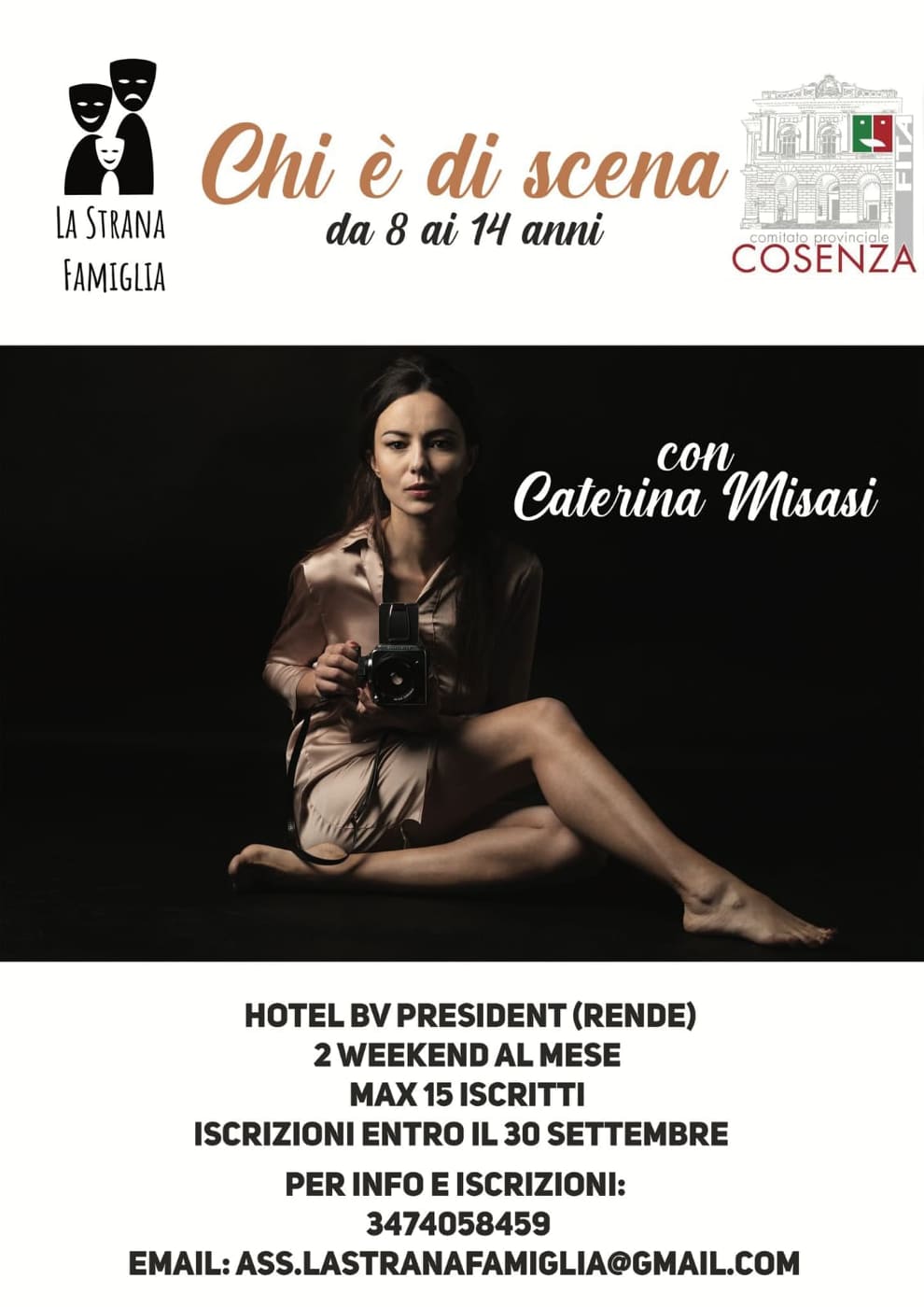 Sarà proprio quest’ultima, volto noto al pubblico del piccolo e del grande schermo, a dare il via alle nostre attività il prossimo 9 ottobre presso L’Hotel President di Rende con il laboratorio CHI E’ DI SCENA, laboratorio rivolto a bambini e ragazzi dagli 8 ai 14 anni.