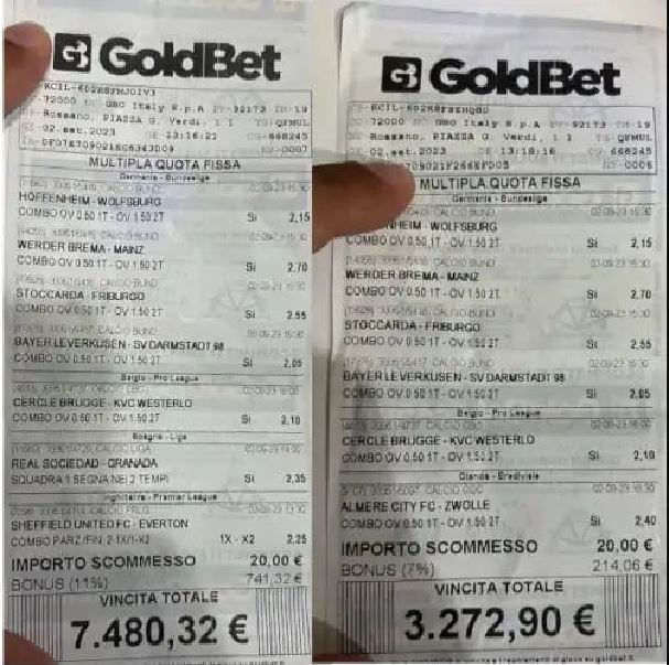 “Nell’ultimo weekend di calcio, un cliente abituale dell’agenzia di Rossano Calabro decide di effettuare una doppia giocata. La prima si basava su 7 partite scelte tra la Bundesliga tedesca, la Liga spagnola, la Premier League inglese e la Pro League del Belgio.