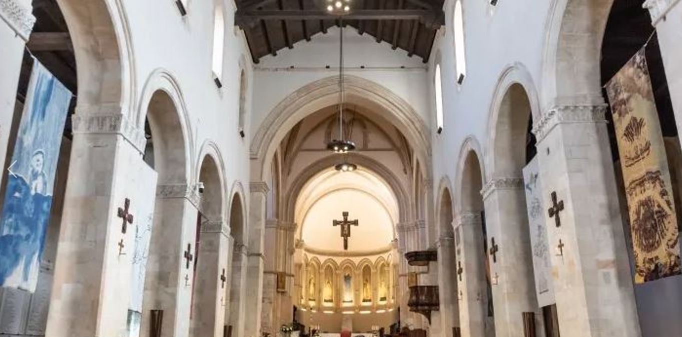 “Queste grandi opere (400×140 cm) sono il frutto di una libera interpretazione di temi religiosi indicati dal gesuita Don Luca Perri, parroco e rettore della cattedrale: a realizzarli sono stati altrettanti grandi nomi dell’arte contemporanea.”