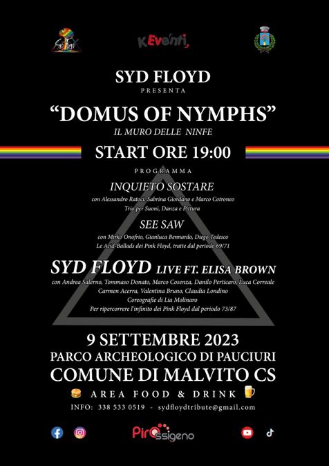 “L’evento, patrocinato dal comune di Malvito e organizzato dalla tribute band Syd Floyd con la collaborazione di KEventi, ha come scopo la valorizzazione del territorio e di ricreare un viaggio della musica dei Pink Floyd, dai primi periodi fino ai successi di fine anni 80’.