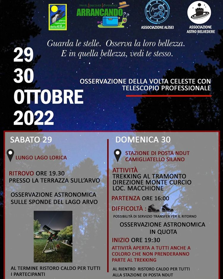 “La vista delle stelle mi fa sognare“, parola di Vincent Van Gogh, ed è a proposito di stelle e di sogni che sabato 29 e domenica 30 Ottobre, nel Parco Nazionale della Sila, l’Associazione Alisei ha deciso di dar vita a due appuntamenti imperdibili per osservare il cielo stellato della Sila.
