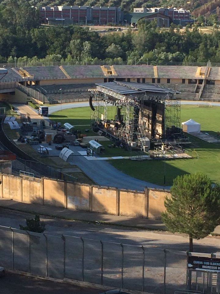 Il palcoscenico è sistemato frontalmete alla tribuba coperta per garantire migliore visuale e ascolto a tutti gli spettatori.