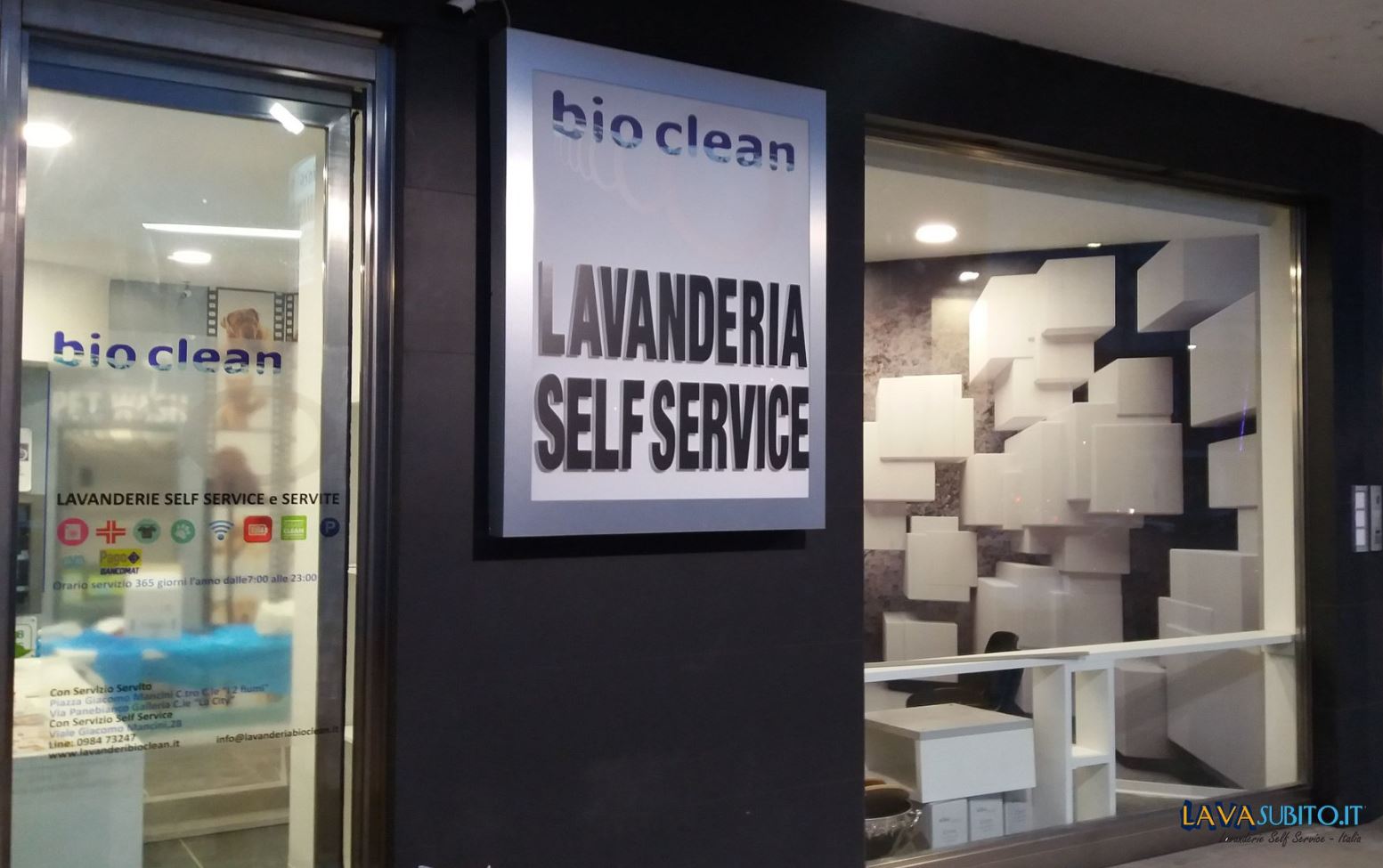 “Self Service con macchinari e detergenti di alta qualità, con angolo dedicato al lavaggio indumenti animali. La prima lavanderia a Cosenza di realizzazione: www.lavasubito.it”