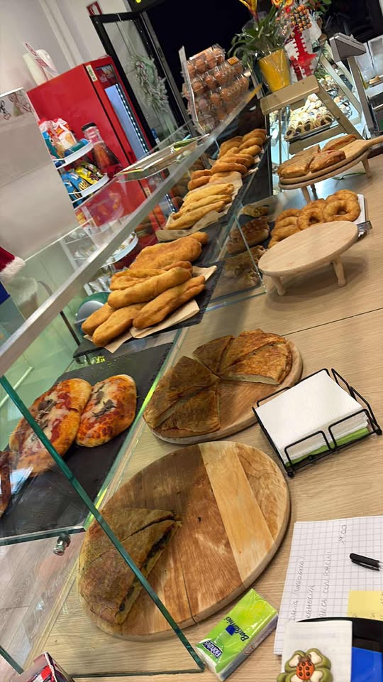 Si va dal classico panzerotto, passando per le pizze rustiche e le immancabili polpette, alla pizzetta e all’hot dog rivisto e modificato con aggiunta di verdure e patatine, per arrivare poi ad un’infinità di dolci di ogni tipo, secco e con creme, fritti e al forno. Non mancano pane, panini, taralli e frese.