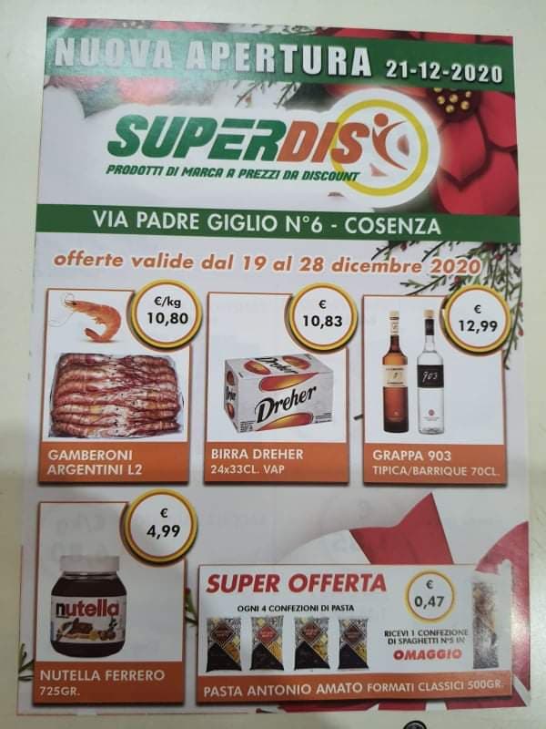E’ con questo slogan che si presenta oggi al pubblico cosentino, in Via Padre Giglio 8, sotto la sopraelevata subito dopo il tribunale, un nuovo punto vendita della catena di supermercati “SuperDisc”.
