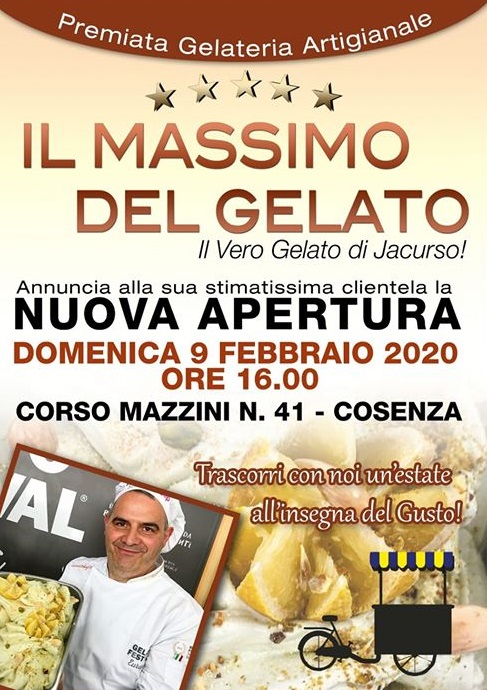 “La pluripremiata e rinomata gelateria Il “Massimo del gelato”, è lieta di annunciare l’ulteriore ampliamento commerciale del proprio brand.
