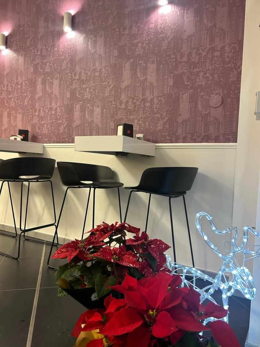 Finalmente sono riuscita ad aprire un locale tutto mio, caratterizzato da uno stile moderno. Industrial dai colori bianco, nero e qualche richiamo rosa e viola , molto accogliente in quanto non molto grande.