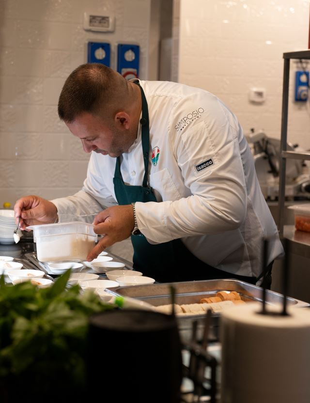 In primis, diamo spazio allo show cooking. Simposio ha infatti una cucina interamente a vista, completamente aperta, fatta appositamente per rendere l’esperienza culinaria comprensiva della fase di realizzazione dei piatti da parte della nostra brigata.