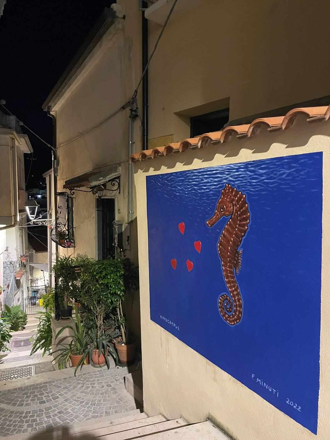 Come si può notare in foto, sul muro vicino la porta d’ingresso del “HomeSuite22” è stato realizzato un murales dall’artista Francesco Minuti, anche lui di Cosenza.