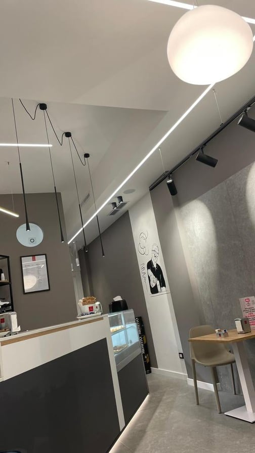 Il locale si presenta relativamente piccolo e realizzato in modo sartoriale, luminoso e proteso verso l’esterno senza nessun velo o schermo. Di taglio moderno e di design, il giusto connubio con la tradizione dei ricordi sottolineata da una datata caffetteria.“